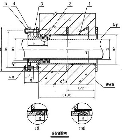 本公司生產(chǎn)的柔性防水套管是根據(jù)建筑科學(xué)研究院研制設(shè)計(jì)的S312/02S404標(biāo)準(zhǔn)圖集制造的。柔性防水套管主要用于管道穿過(guò)墻壁之處受有振動(dòng)或有嚴(yán)密防水要求的構(gòu)筑物,柔性防水套管穿墻處之墻壁,如遇非混凝土?xí)r應(yīng)改用混凝土墻壁,而且必須將防水套管一次凝固于墻內(nèi);柔性防水套管廣泛用于建筑、化工、鋼鐵、自來(lái)水、污水處理等單位。